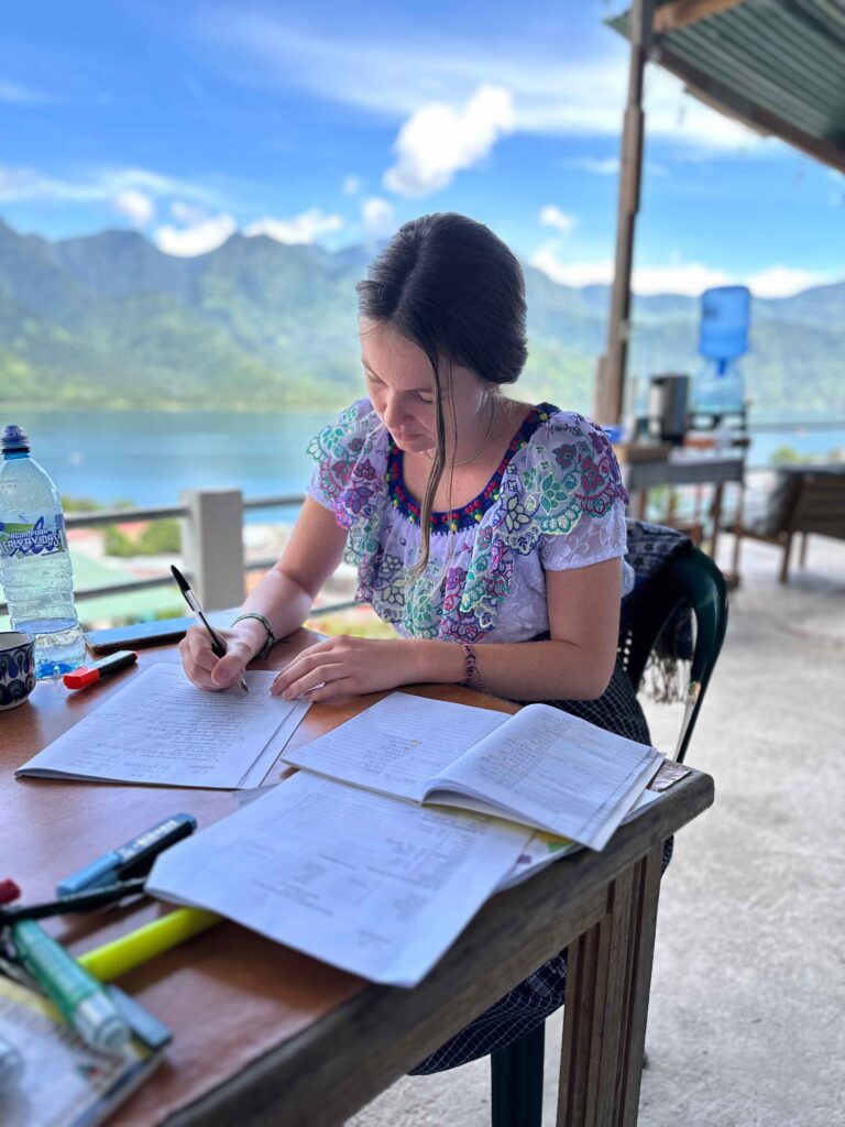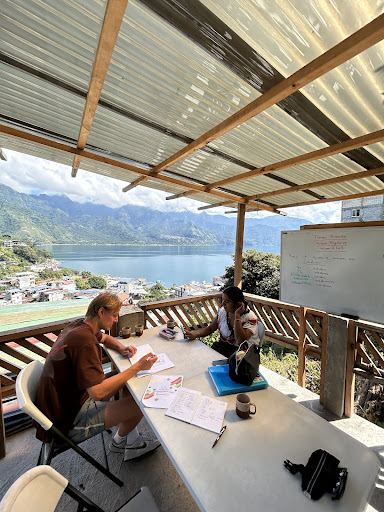 1)Not only are the Spanish lessons of high quality, but they are also able to tailor the timings to suit your other activities around lake Atitlan. These classes take place with flowing coffee and overlooks the scenic lake. They provide local snacks during the breaks (see image)